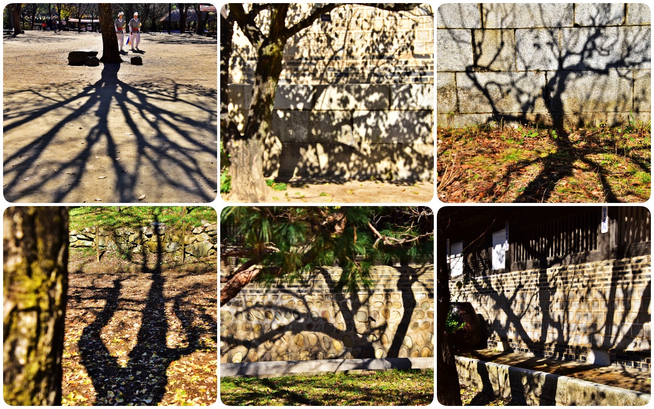 대신 양반집 돌담들에 떨어진 나무그림자들이 눈에 띠는군요.