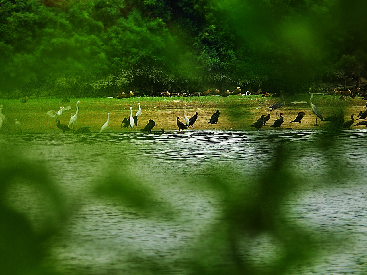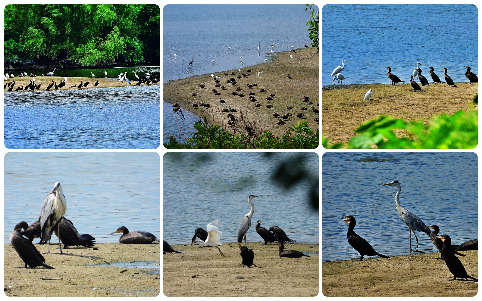 백로와 민물가마우지 그리고 오리들입니다.