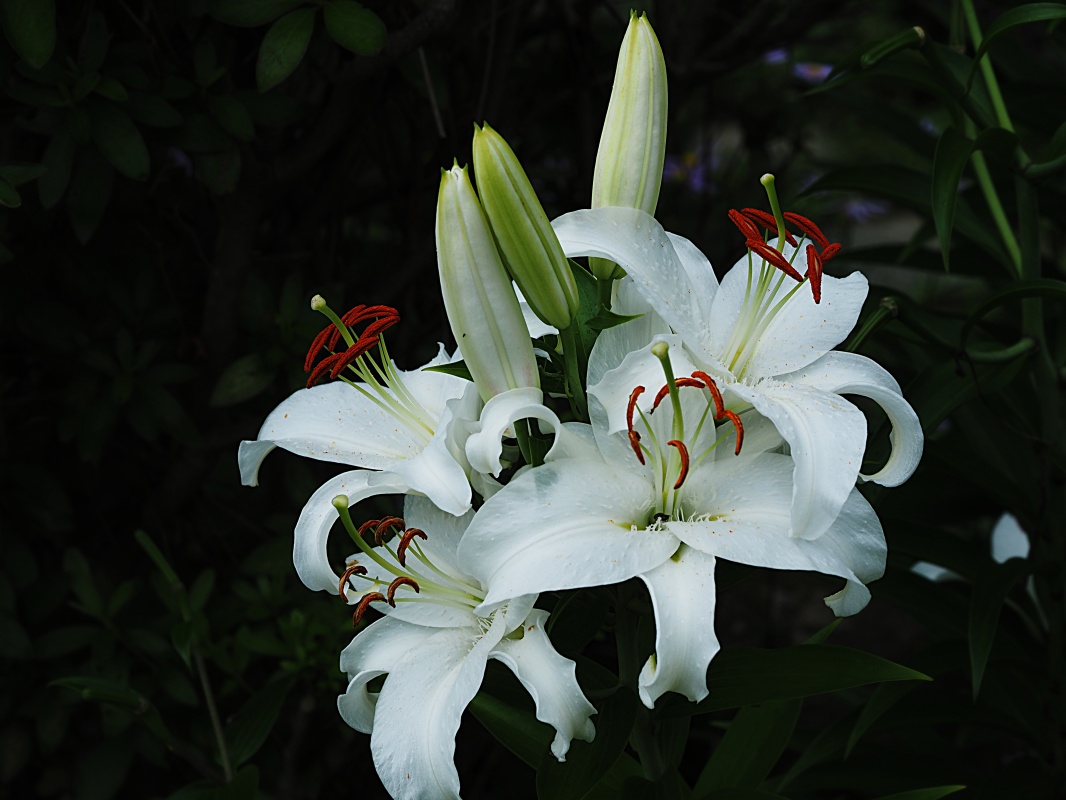 앞마당화단에 하얀색 백합꽃이 피었습니다.